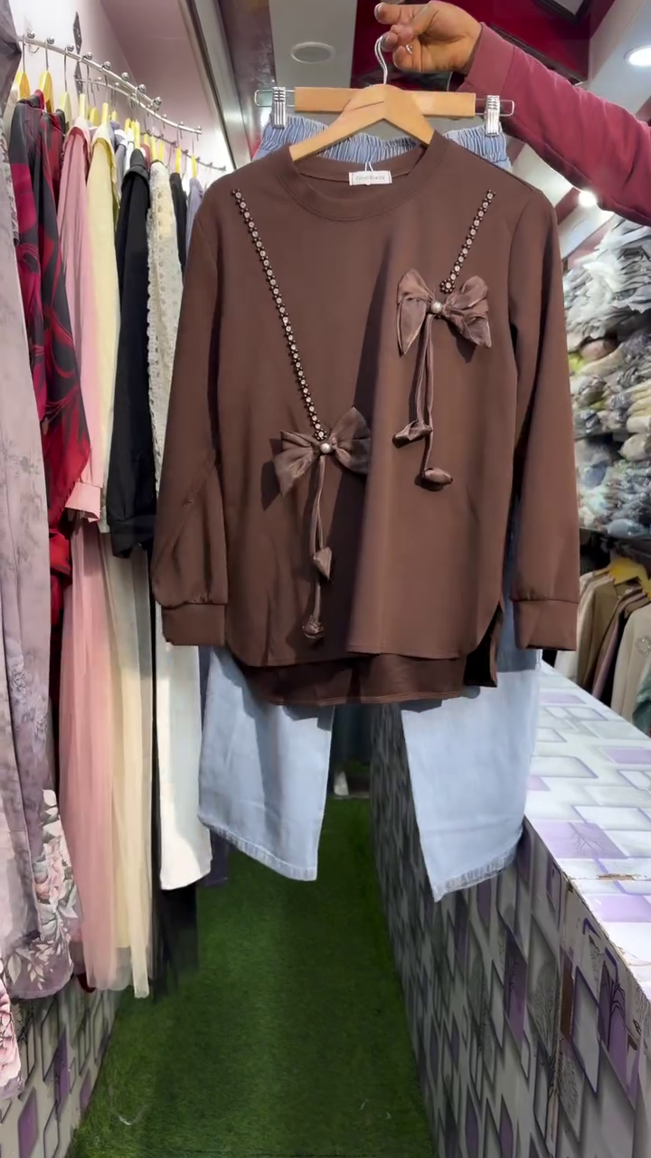 Bow detailing zyada heavy nahi hai, isliye top simple rehte hue bhi standout karta hai. Flats, sandals ya sneakers ke saath casual look milega, jabki heels ke saath thoda dressy look create ho jata hai. Easy-care fabric hone ki wajah se washing ke baad bhi shape aur colour maintain rehta hai.